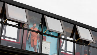 Balanced atop a single column, ReActor twirls when the wind blows and tilts see-saw like with the shifting weight of its inhabitants. The fifth project made in collaboration with Ward Shelley, this project is built on a hill the OMI International Arts Center’s Architecture Field and will be on view until August 2018. - Alex Schweder
