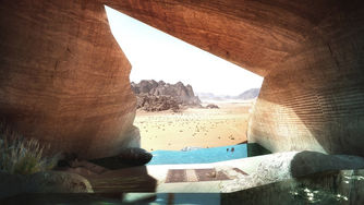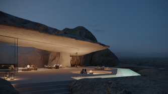 Dramatically situated, the lodges and villas in their various incarnations; are all about a visceral connection to culture and place. The resulting experience is a revolutionary notion of opulence that is intentionally reduced to what is essential. The structure of the lodges will be carved into the sandstone cliffs, utilising the existing geological geometries of the rock to devise the form. Other structures are comprised of rammed earth and cement mixed with the local red sand. The minimal yet powerful gestures of the architecture, both built and carved serves to create harmony, and balance while framing and amplifying the surroundings. Great care has been given to utilising local materials as well as various water conservation measures for both human and site irrigation to establish a relatively closed system of harvesting rain water in subterranean cisterns and re-harvesting grey/black water though a living machine of botanical and biological nature. - Dezeen